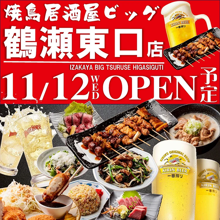 このたび、「焼鳥居酒屋ビッグ 鶴瀬東口店」が、2025年11月12日(水)にオープン予定となりました!