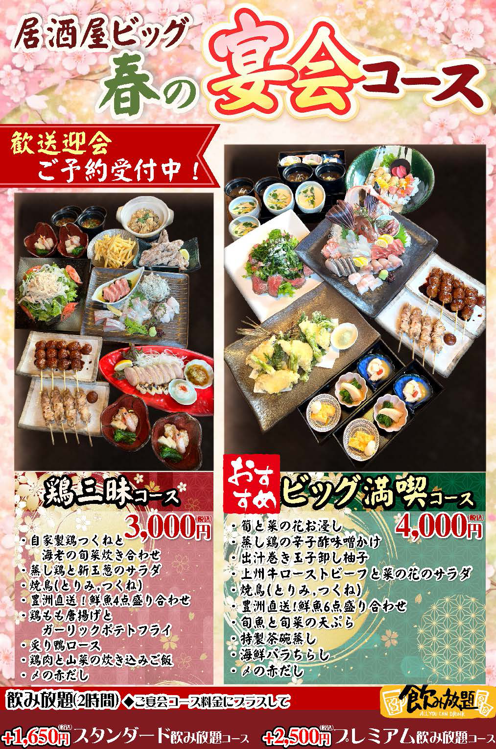 居酒屋ビッグでは、春の宴会コースがスタート!
